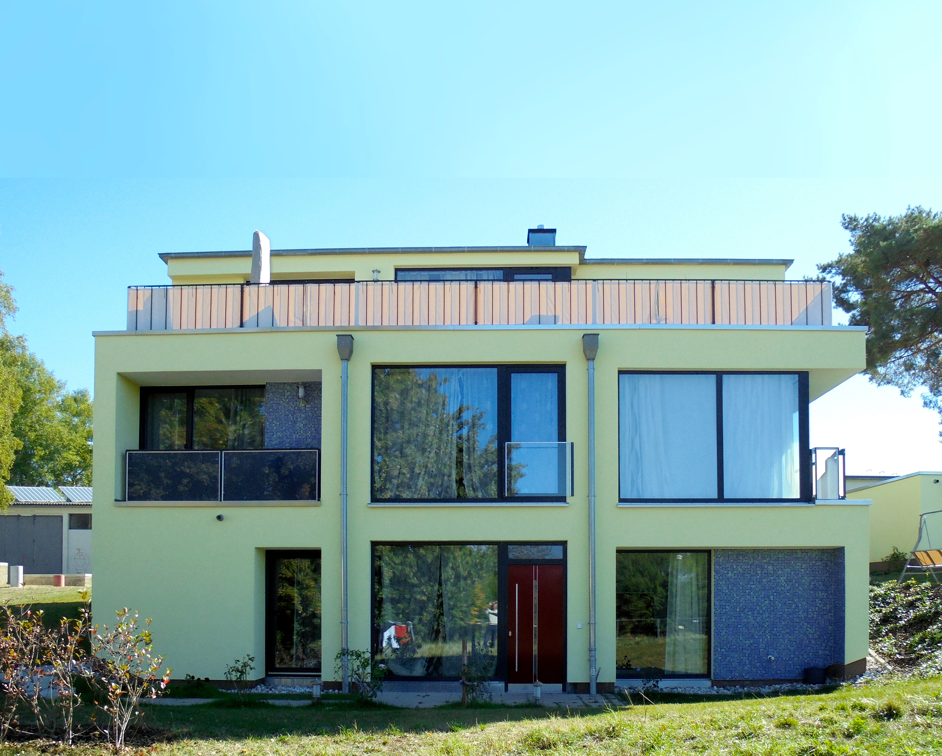 und wird ebenfalls von der Familie der Bauherrschaft genutztt. Das Dachgeschoss mit einer großen Dachterrasse ist vermietet.